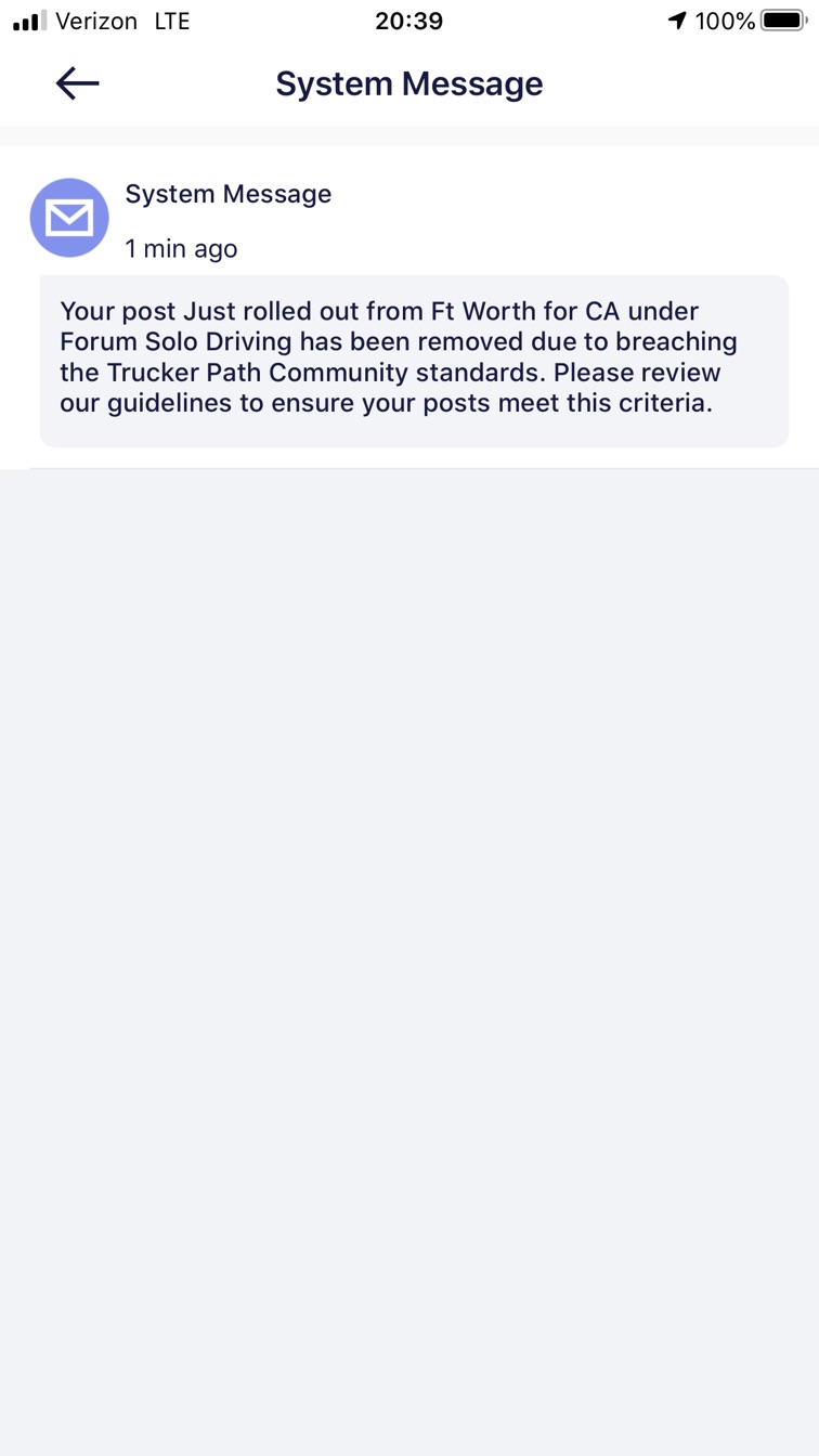 {"replyTo":"","text":"No trucker talk allowed on a trucker app smh","replyToPid":0}