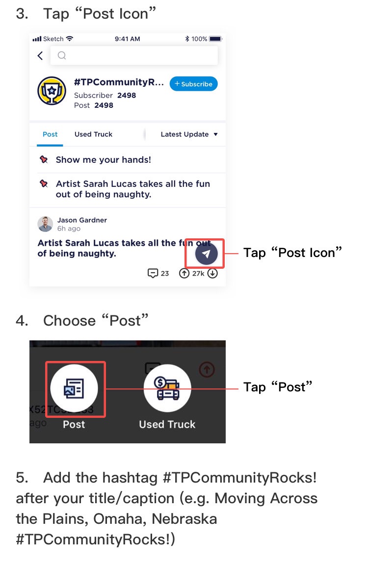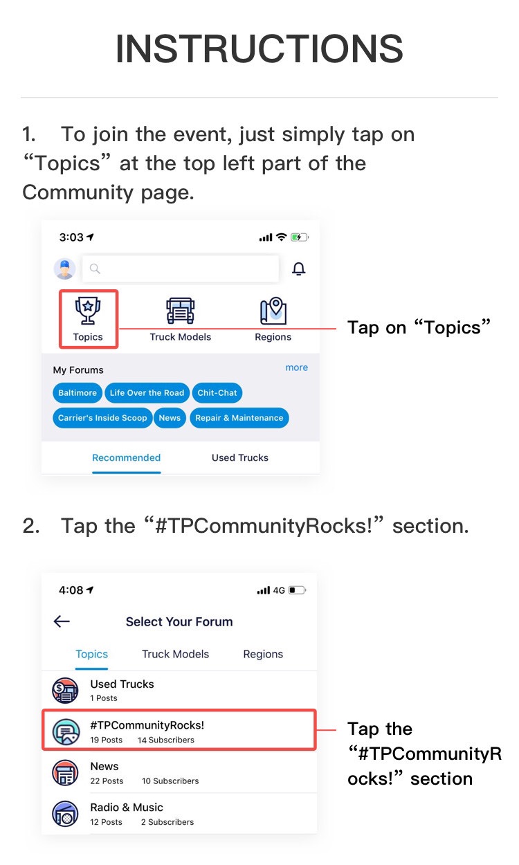 {"text":"In celebration of our launch of Trucker Path Community, we want to give you the opportunity to win a 3-month Gold membership to Trucker Path! \n\nThe membership comes complete with information on parking, truck specific routing, fuel information and more. \n\nNo one views as much of the country as a driver and their truck. \n\nWe want you to upload the best photo of you and your truck together as you move the US economy forward to the “#TPCommunityRocks!” page. \n\nWinners will be decided upon by your peers. \n\nThe top 5 vote getters will receive the 3-month Gold Membership! \n\nStep-by-step instructions are included below! Contest ends March 10, 2019, so get that picture uploaded!","pics":"[{\"description\":\"\",\"height\":400.0,\"name\":\"615914/ios_15515217446010.png\",\"url\":\"\",\"width\":750.0},{\"description\":\"\",\"height\":400.0,\"name\":\"615914/ios_15515217446021.png\",\"url\":\"\",\"width\":750.0},{\"description\":\"\",\"height\":400.0,\"name\":\"615914/ios_15515217446022.png\",\"url\":\"\",\"width\":750.0},{\"description\":\"\",\"height\":1250.0,\"name\":\"615914/ios_15515217446023.png\",\"url\":\"\",\"width\":750.0},{\"description\":\"\",\"height\":1150.0,\"name\":\"615914/ios_15515217446034.png\",\"url\":\"\",\"width\":750.0},{\"description\":\"\",\"height\":1344.0,\"name\":\"615914/ios_15515217446035.png\",\"url\":\"\",\"width\":720.0}]","canComment":true}