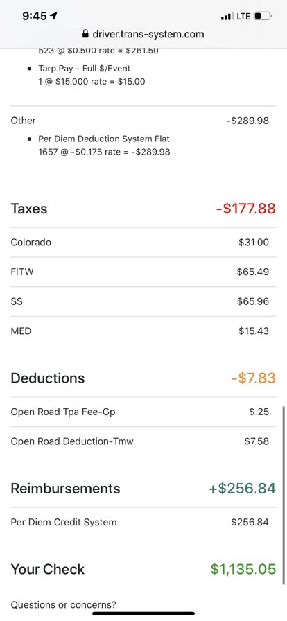 {"replyTo":"","text":"Per Diem deductions?? Per Diem is monies owed to you.  You earned $289.98 in per diem which was deducted then only $$256.84 was credited back?? That ain't right. The per diem deductions line should not even be there!  You earned $289.98 in per diem...that's it, it shouldn't be taken out.","replyToPid":0}